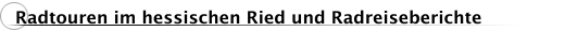 In Kürze erfahren Sie hier mehr über Radtouren die ihren Ausgangspunkt mehr oder weniger im hessischen Ried haben. Sowohl Rennrad,- MTB,-  und Trekkingtouren sollen beschrieben werden und als Kartenausschnitt mit GPS-Daten zur Verfügung gestellt werden.